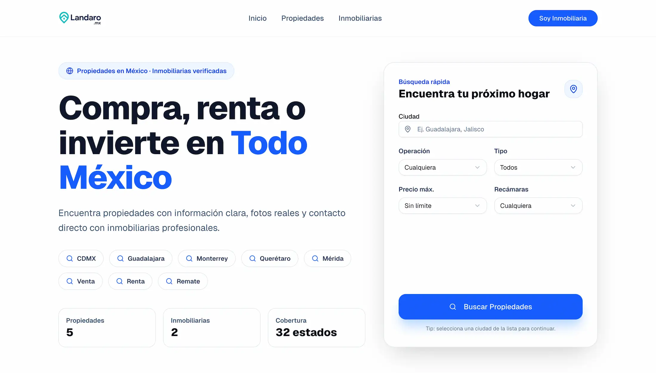 Plataforma Inmobiliaria para la Venta y Alquiler de Propiedades en México